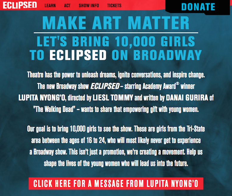The Big Idea: Share the power of theatre. Bring 10,000 underserved girls to Eclipsed on Broadway.